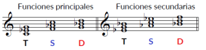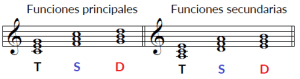 Tomando como base la armonía tonal funcional, podemos ver que cada una de las tres funciones tonales existentes (Tónica, Subdominante y Dominante) pueden estar representadas por varios acordes de una tonalidad. En Do Mayor, tendríamos los siguientes acordes principales y secundarios (o paralelos en nomenclatura de Wilhelm Maler):