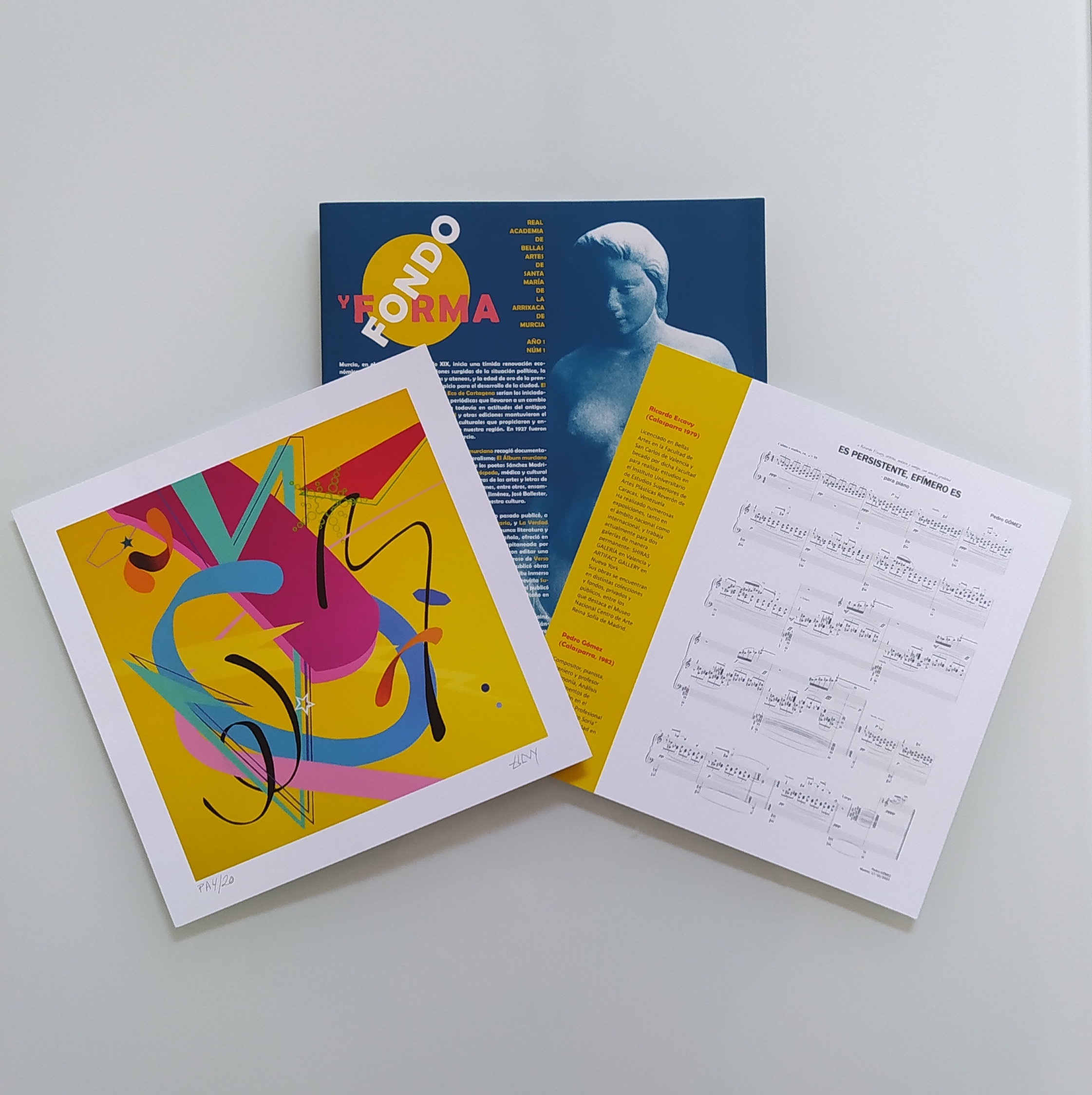 El pasado jueves 18 de abril se presentó el primer número de Fondo y Forma, una revista periódica publicada por la Real Academia de Bellas Artes de Santa María de la Arrixaca, de Murcia. Cada número incluirá una reproducción numerada y firmada de una obra de algún artista visual, que dialogará con otra pieza de cualquier rama artística. El encargado de abrir esta serie ha sido mi amigo y paisano Ricardo Escavy, un artista excepcional, quien tuvo la generosidad de pedirme una pieza musical para este proyecto.