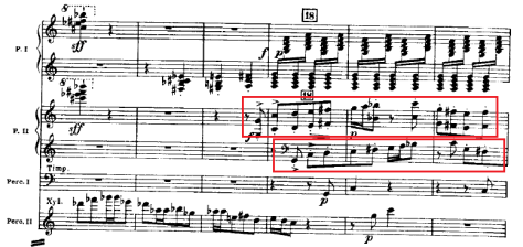 La particularidad de estas cuatro notas es que dos de ellas son las equivalentes de las otras según los ejes de tritono. Es decir, tenemos una función Tónica y una función Dominante superpuestas y duplicadas. Esta verticalidad es muy usada por Bartók en muchas de sus obras, tanto en disposición abierta como cerrada.